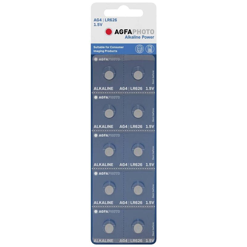 Agfaphoto Alkaline-Knopfbatterie Lr626, Ag4, 1,5 V Leistung, Einzelhandelsblister (10er-Pack)