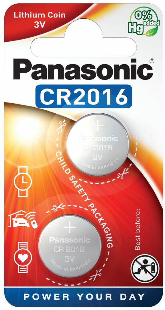 Panasonic CR2016 Lithium Knopfbatterie, 2 Stück, 3Volt