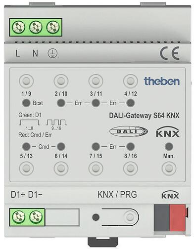 Theben DALI-Gateway S64 KNX DALI-Gateway 1-fach, KNX TP, für 64 DALI-Leuchten 4940301