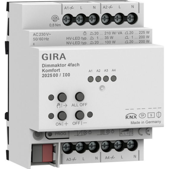 Gira 202500 Dimmaktor 4fach REG Komfort KNX Secure