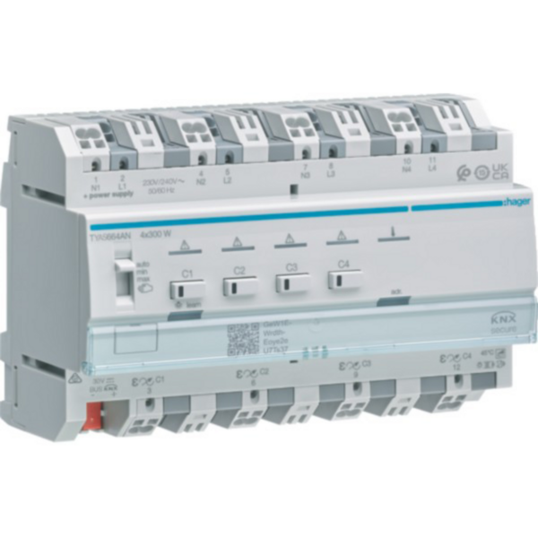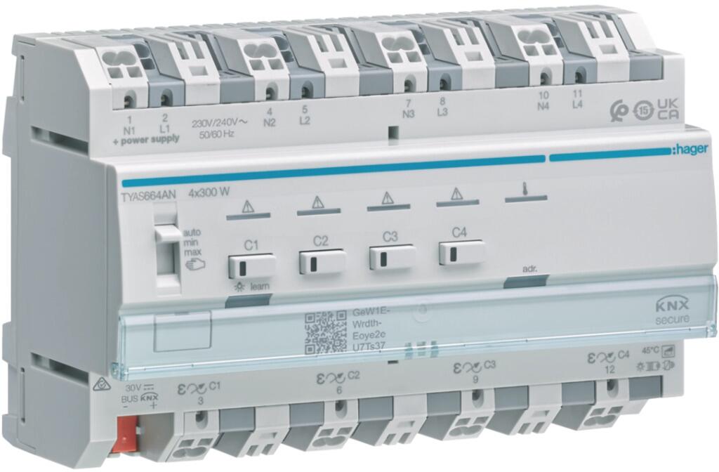Hager Uni-Dimmaktor 4-fach KNX TYAS664ANSecure 4x300W ESL/LED (TYAS664AN)