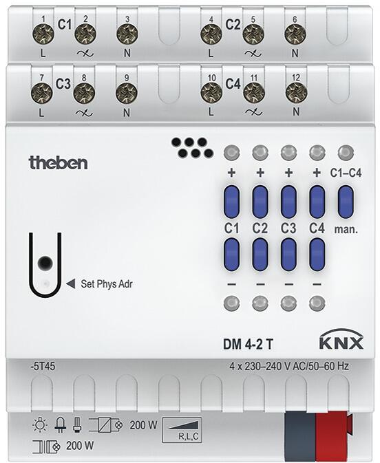 Theben DM 4-2 T KNX Dimmaktor 4-fach, Universal-Dimmaktor 200 W, KNX TP 4940280