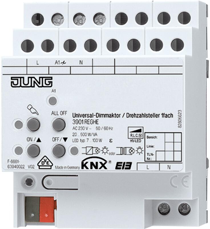 Jung 3901REGHE KNX LED-Universal-Dimmaktor / Drehzahlsteller, 1fach