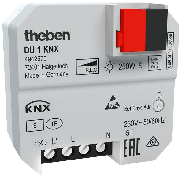 Theben 4942570 DU 1 KNX - UP-Universal-Dimmaktor, 1 Kanal, für dimmbare Energiesparlampen, LED, Glüh- und Halogenlampen