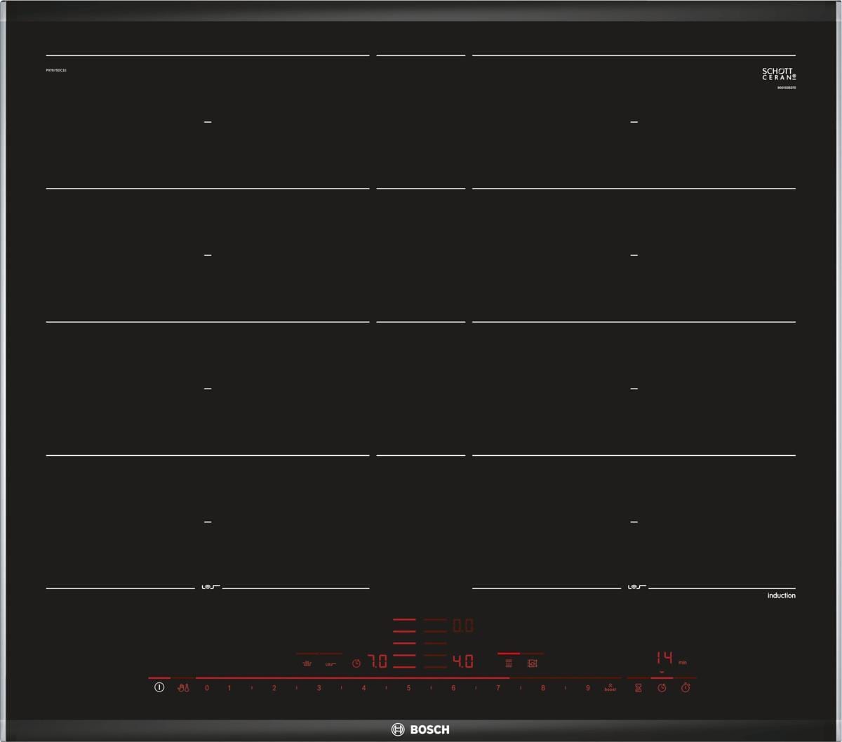 Bosch PVS831HC1E Serie 6 autarkes Induktions-Kochfeld 80,2cm breit rahmenlos DirectSelect Combi Zone Smart Hood Automatic schwarz