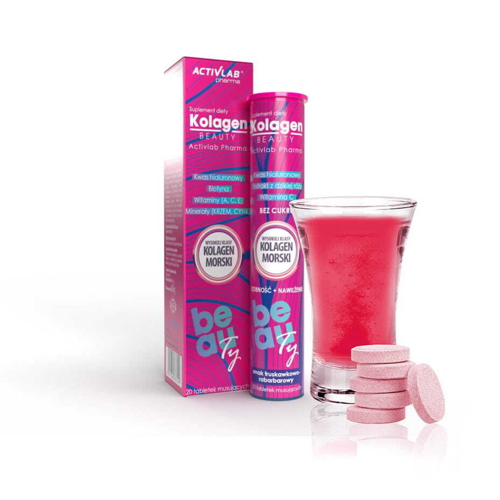 Activlab Pharma KOLAGEN BEAUTY 20 Brausetabletten – Meereskollagen + Hyaluronsäure + Vitamin C | Brausetabletten mit Erdbeer-Rhabarber-Geschmack