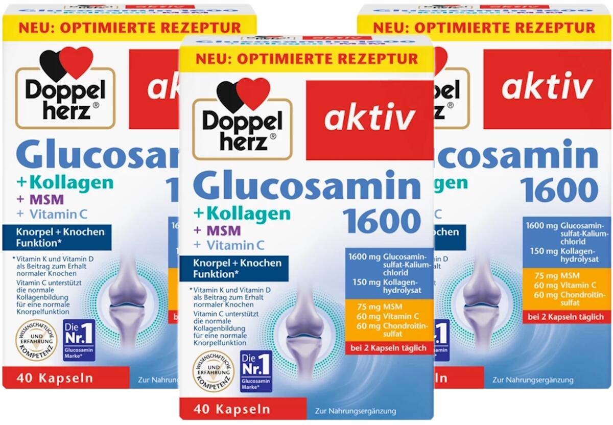 Doppelherz Glucosamin 1600 + Kollagen + MSM + Vitamin C, 3 x 40 Kapseln