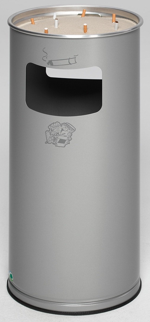 PROREGAL Klassischer Kombiascher rund | HxBxT 66x23x23cm | Verzinkter Stahl | Grau | Mülleimer Aschenbecher Abfalleimer