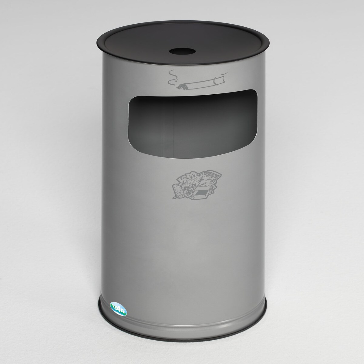 PROREGAL Runder Metall Kombiascher mit ovaler Einwurfsöffnung | 30 Liter, HxØ 72x24cm | Grau