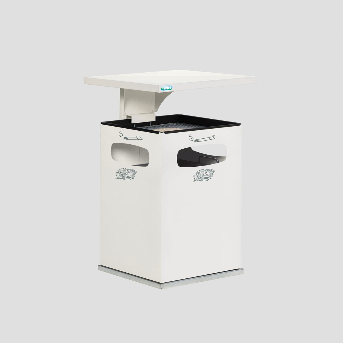 PROREGAL Kombiascher mit verstärktem Schutzdach | 38 Liter, HxBxT 91x39,5x39,5cm | Verzinkter Stahl | Weiß | Mülleimer Aschenbecher Abfalleimer