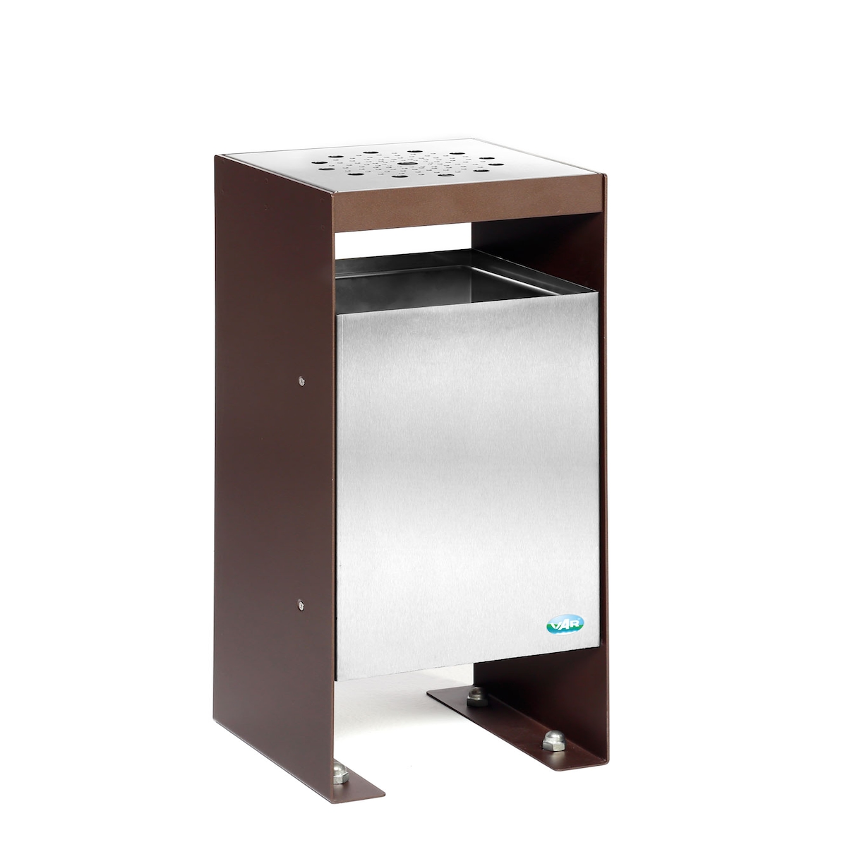 PROREGAL Robuster Kombiascher | 60 Liter, HxBxT 72x25x25cm | Verzinkter Stahl | Braun | Mülleimer Aschenbecher Abfalleimer