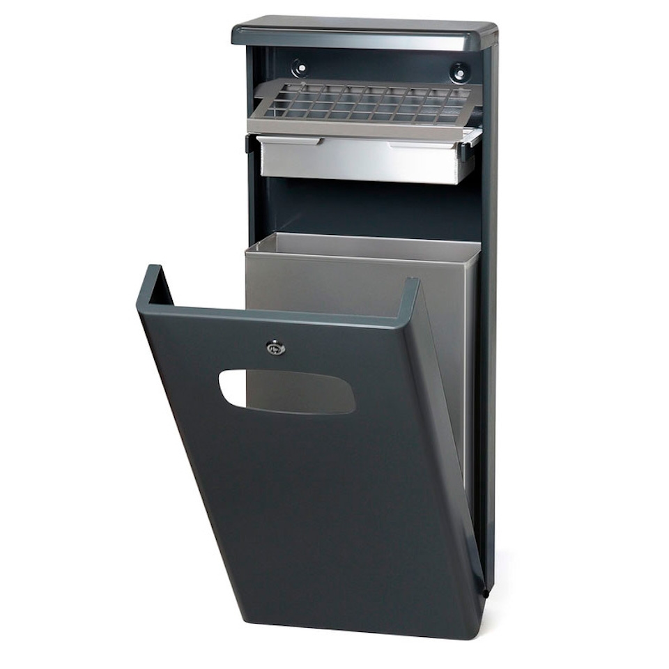 Kombiascher mit Einflügeltür | Ascher innen | 90 Liter, HxBxT 124,5x42x42cm | Verzinkter Stahl | Anthrazit