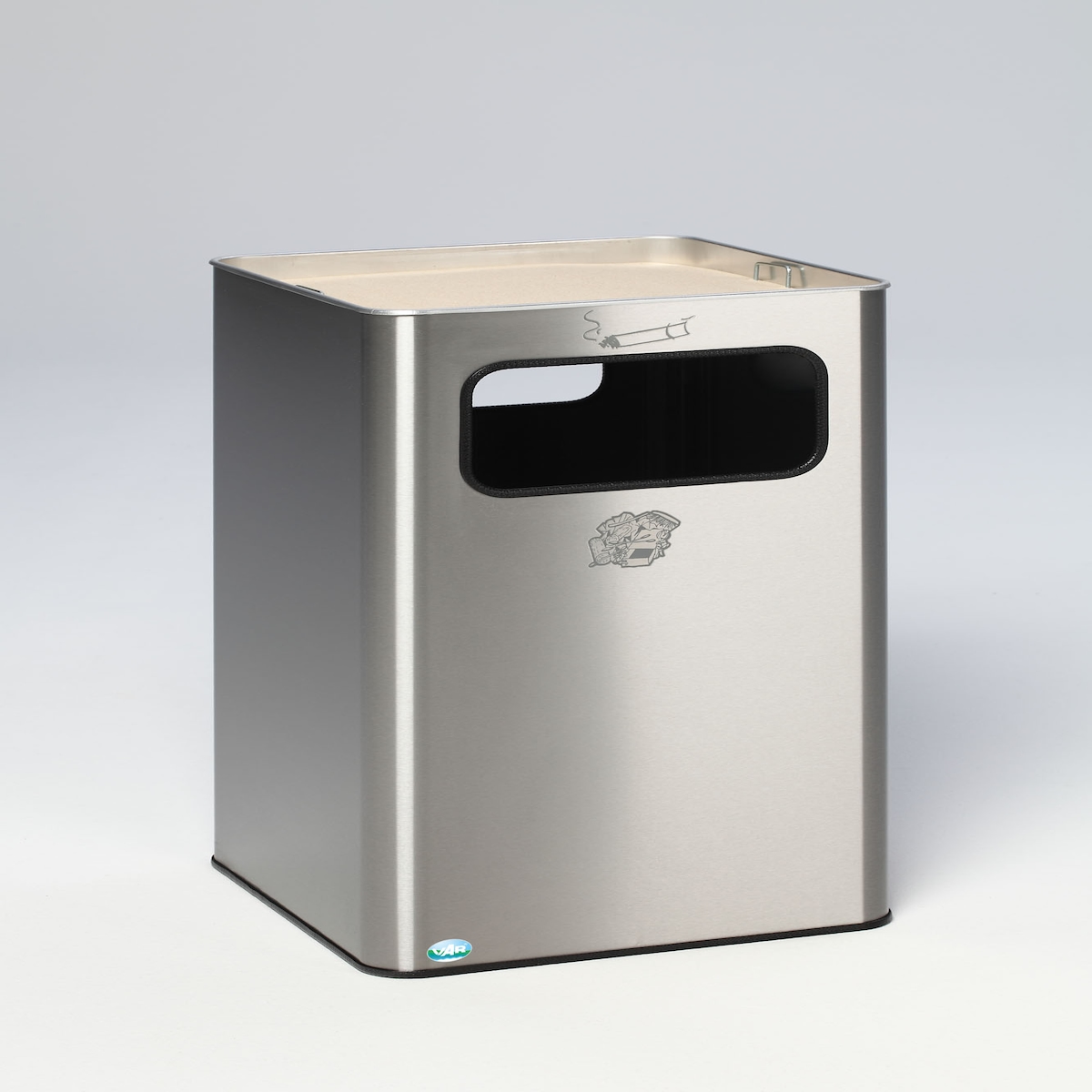 PROREGAL Kombiascher mit abgerundeten Ecken | 2-Fach Einwurf | 96 Liter, HxBxT 75,5x43x43cm | Edelstahl | Mülleimer Aschenbecher Abfalleimer