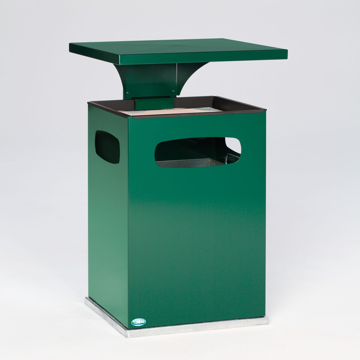 PROREGAL Kombiascher mit verstärktem Schutzdach | 38 Liter, HxBxT 91x39,5x39,5cm | Verzinkter Stahl | Grün | Mülleimer Aschenbecher Abfalleimer