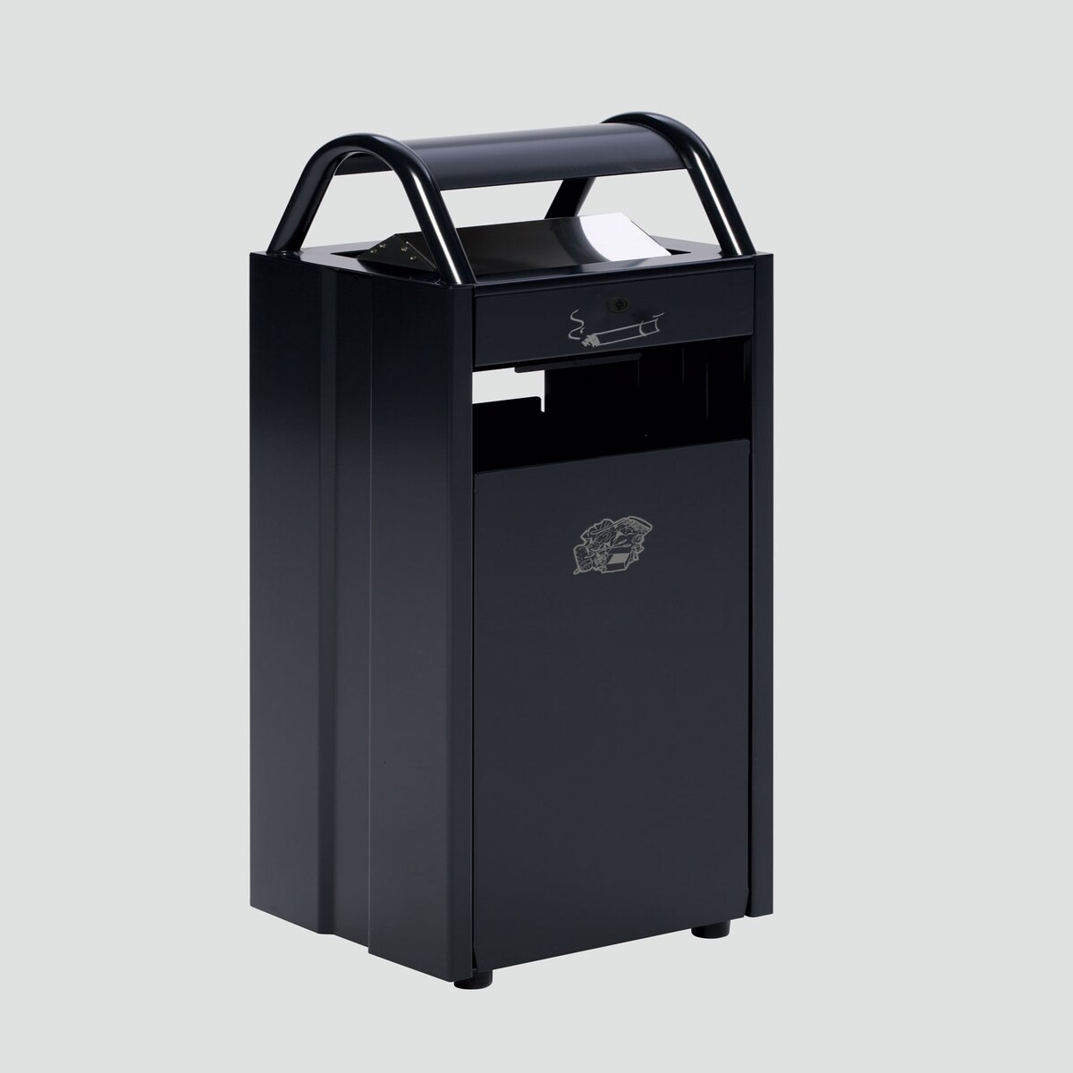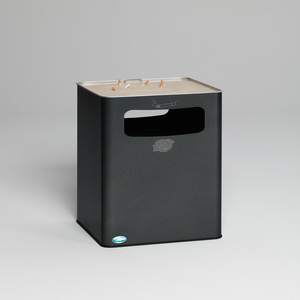 Quadratischer Kombiascher aus pulverbeschichtetem Stahl | 70 liter, HxBxT 88x38,5x38cm | Basismodul ohne Bedachung | Schwarz