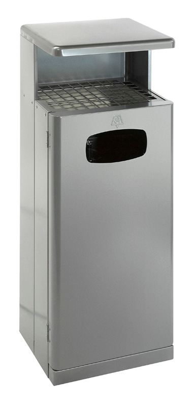 Kombiascher mit Bedachung für den Außenberreich | 32 Liter, HxBxT 95x40x19cm | Aluminium | Grau