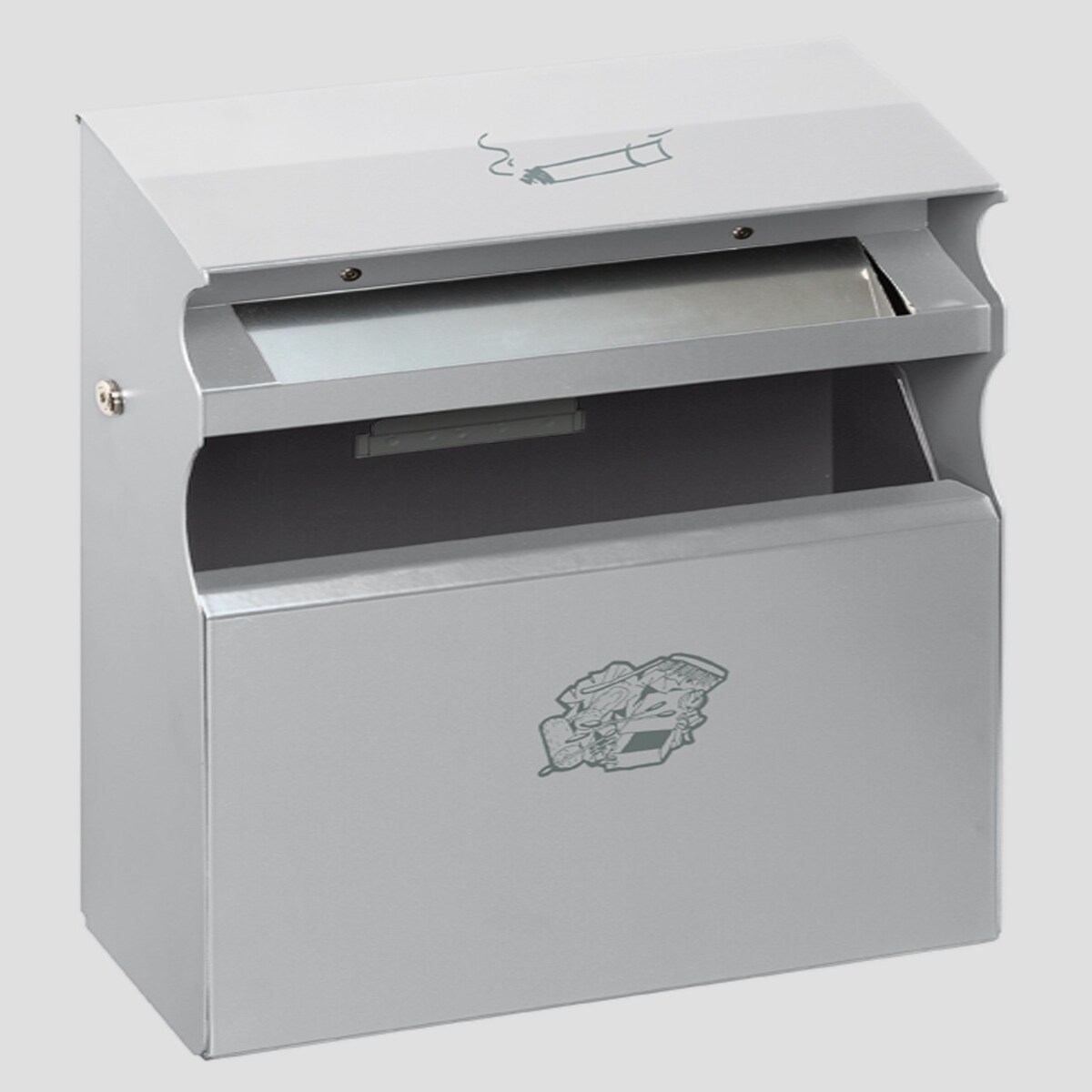 PROREGAL Eckiger Kombiascher mit Einwurfblende | 15 Liter, HxBxT 54x30x14cm | Verzinkter Stahl | Silber | Mülleimer Aschenbecher Abfalleimer