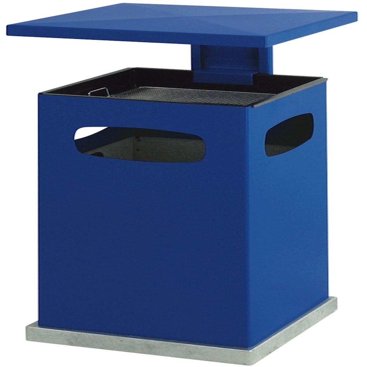 PROREGAL Klassischer Kombiascher eckig | HxBxT 75,5x43x43cm | Verzinkter Stahl | Blau | Mülleimer Aschenbecher Abfalleimer