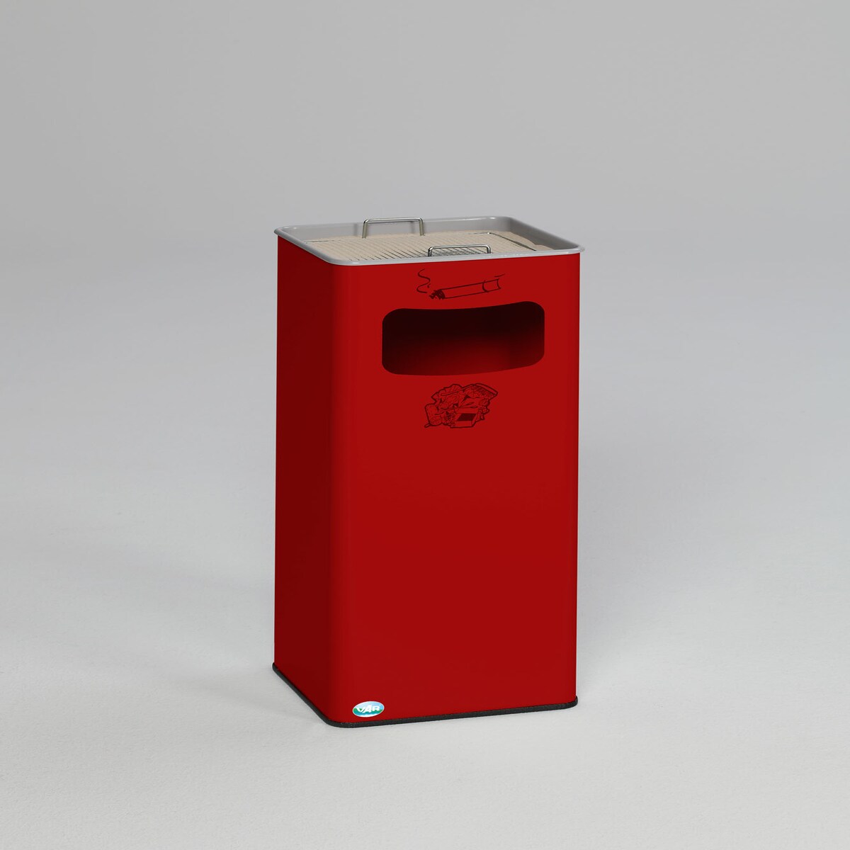PROREGAL Klassischer Kombiascher eckig | HxBxT 66,5x26x26cm | Verzinkter Stahl | Rot | Mülleimer Aschenbecher Abfalleimer