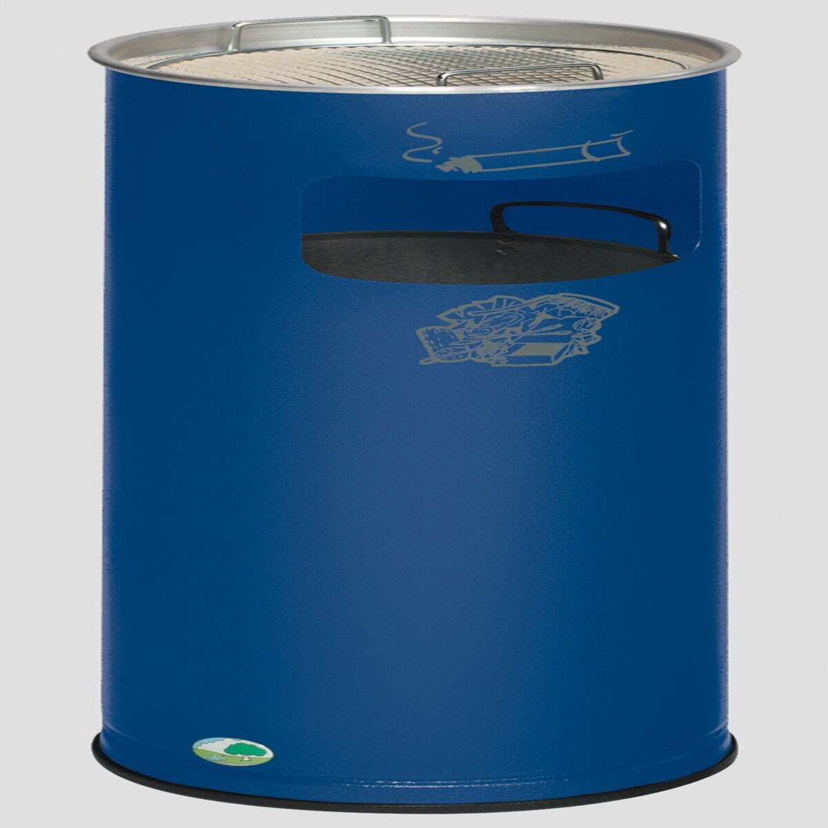 PROREGAL Klassischer runder Kombiascher | HxBxT 61x25x25cm | Verzinkter Stahl | Blau | Mülleimer Aschenbecher Abfalleimer
