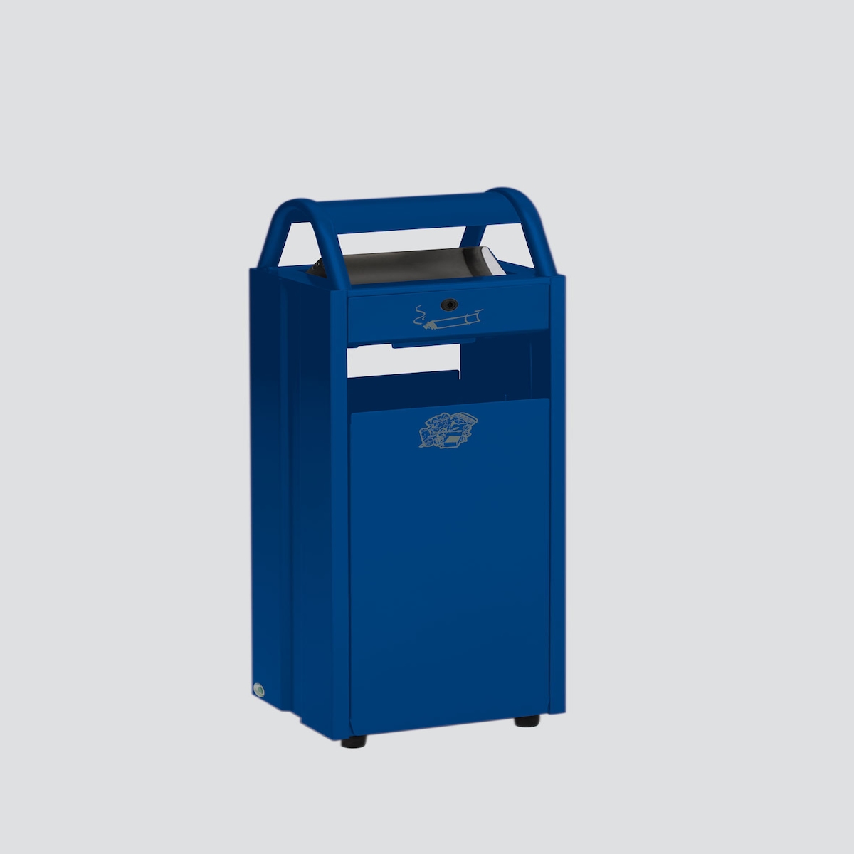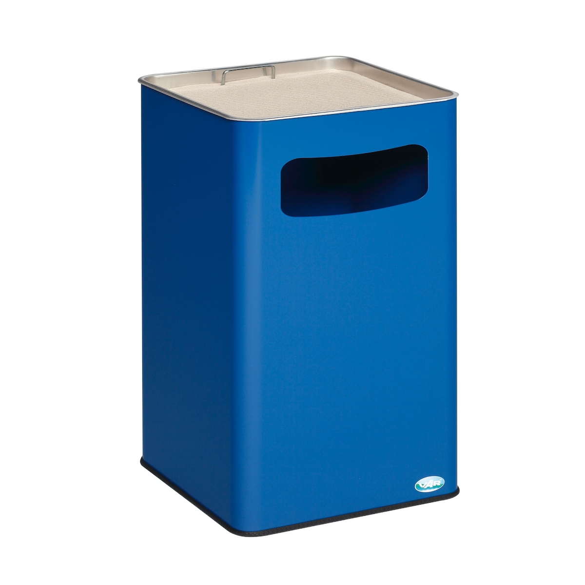 Eckiger Kombiascher mit Einwurfblende | 15 Liter, HxBxT 54x30x14cm | Verzinkter Stahl | Blau