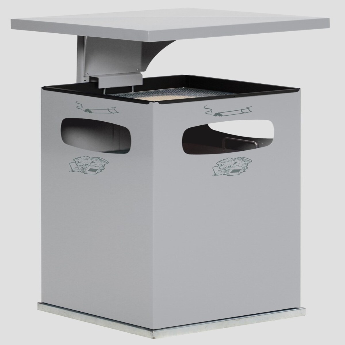 PROREGAL Klassischer Kombiascher eckig | HxBxT 75,5x43x43cm | Verzinkter Stahl | Grau | Mülleimer Aschenbecher Abfalleimer