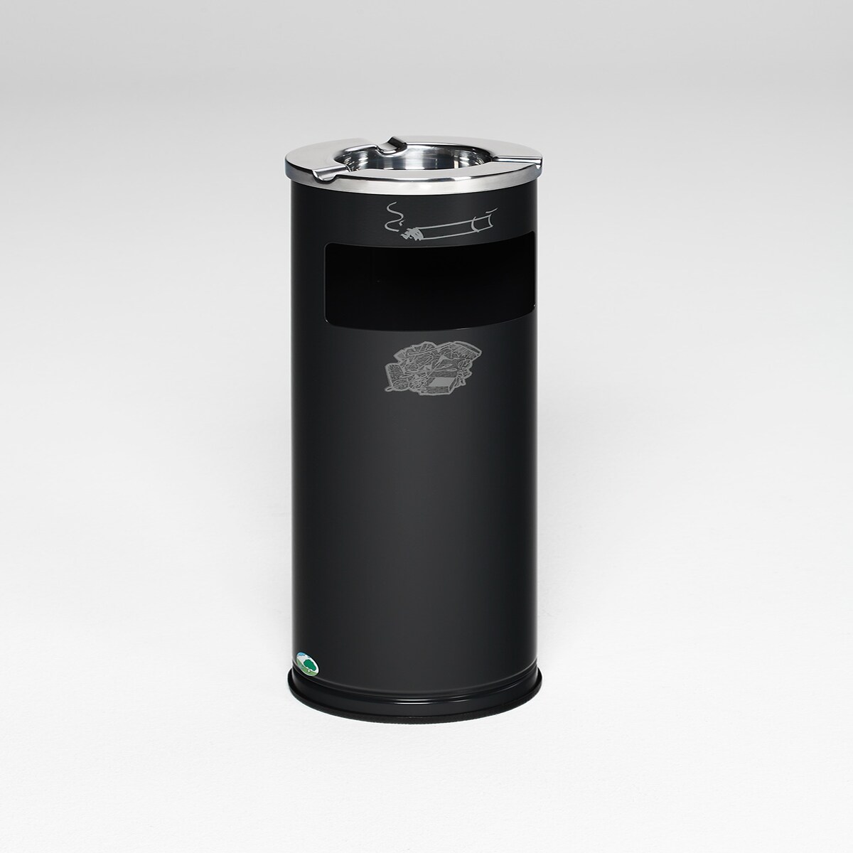Runder Kombiascher | 12,5 Liter, HxØ 61x25cm | Verzinkter Inneneimer | Schwarz