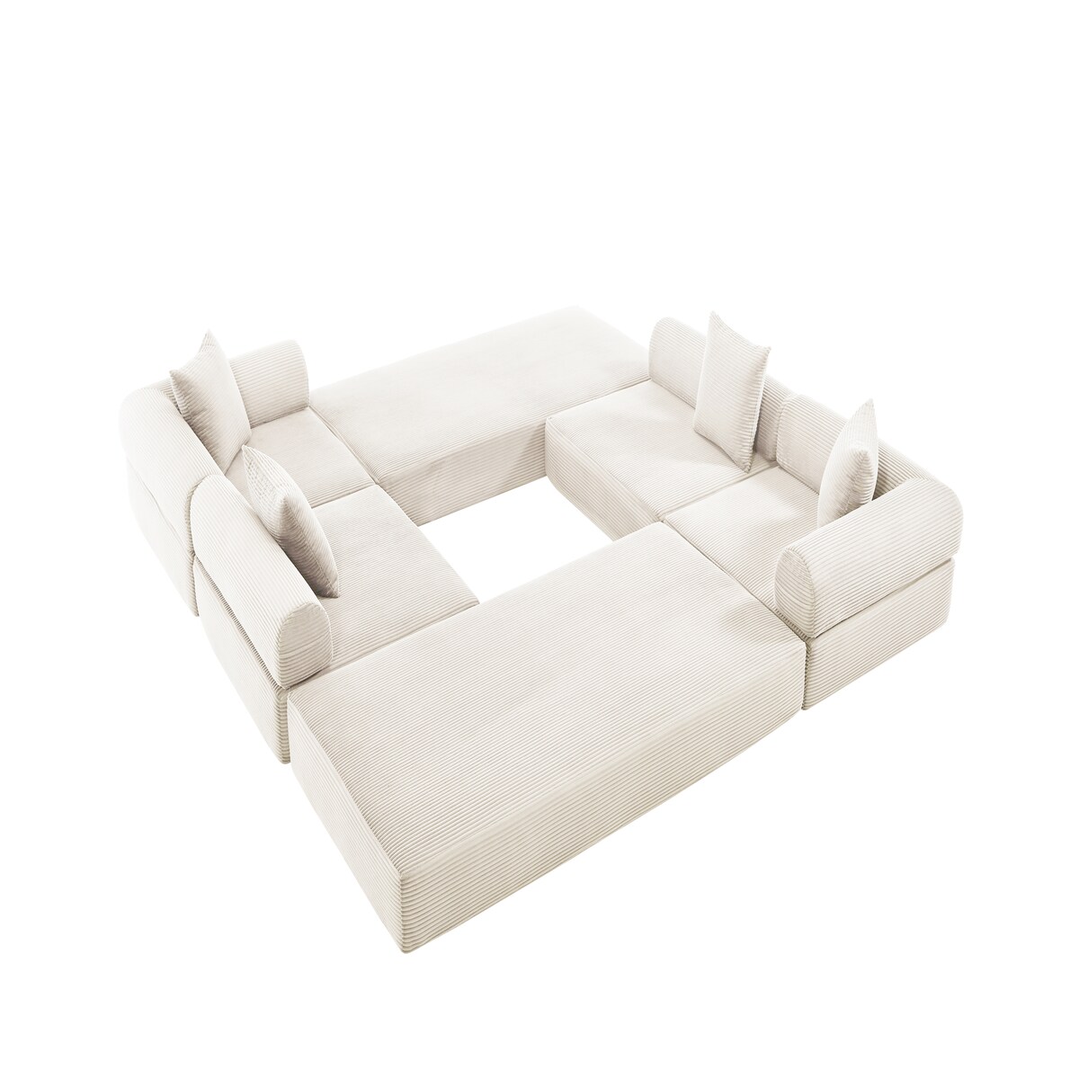 OKWISH Modulares Sofa 270x180x64 Beige mit Cord-Bezug, Seitentasche, Schlafsofa-Funktion, Schaumstoffpolster, Wohnzimmer Couch, Komfort