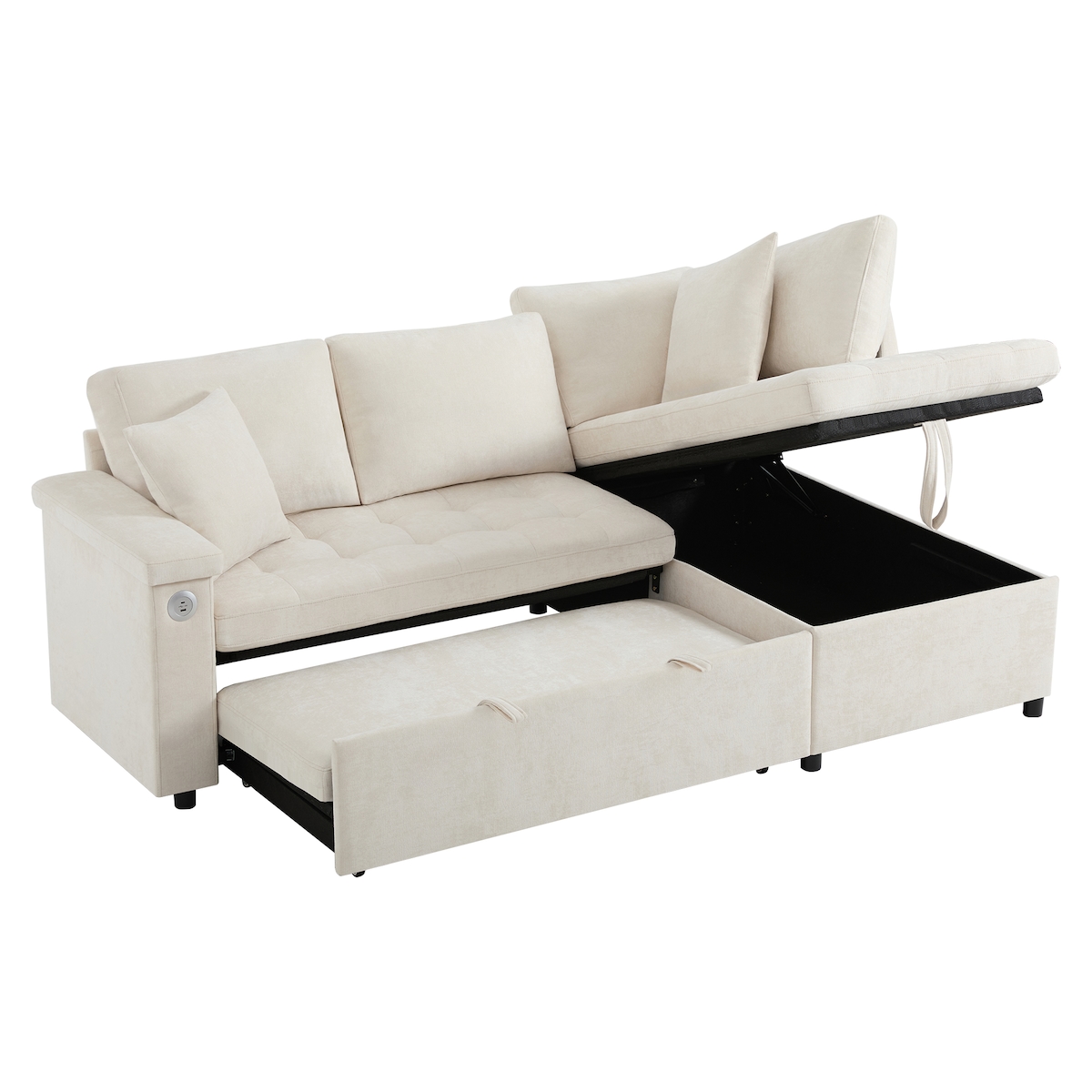 OKWISH Schlafsofa 140x137x59 cm mit Stauraum, Schlaffunktion, USB-Anschluss und Getränkehalter – modernes, komfortables Chenille Sofa Beige