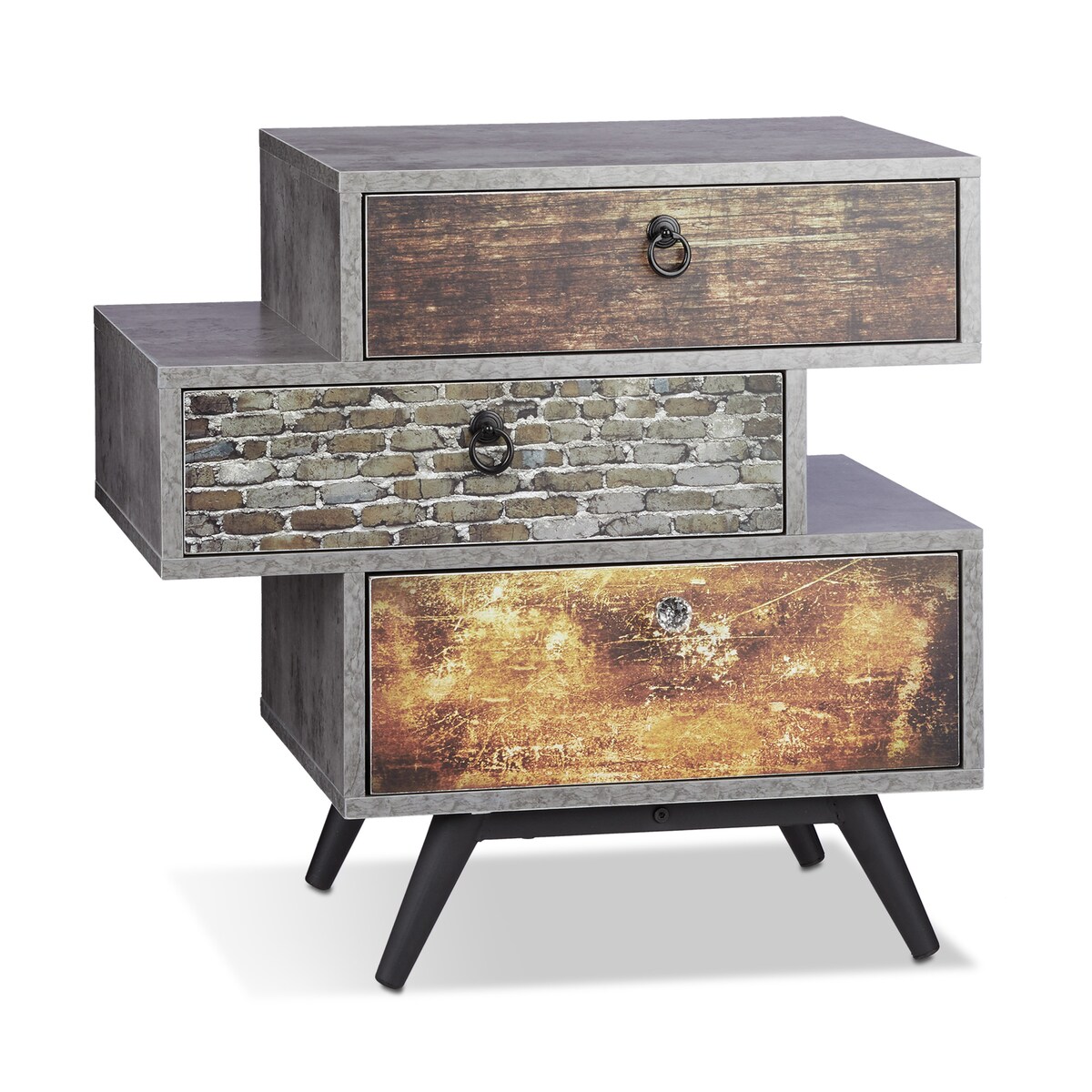 Relaxdays Vintage Kommode m. 3 Schubladen, Betonoptik Beistellschrank, Shabby Schublade m. Griff, HBT: 60x60x40 cm, grau