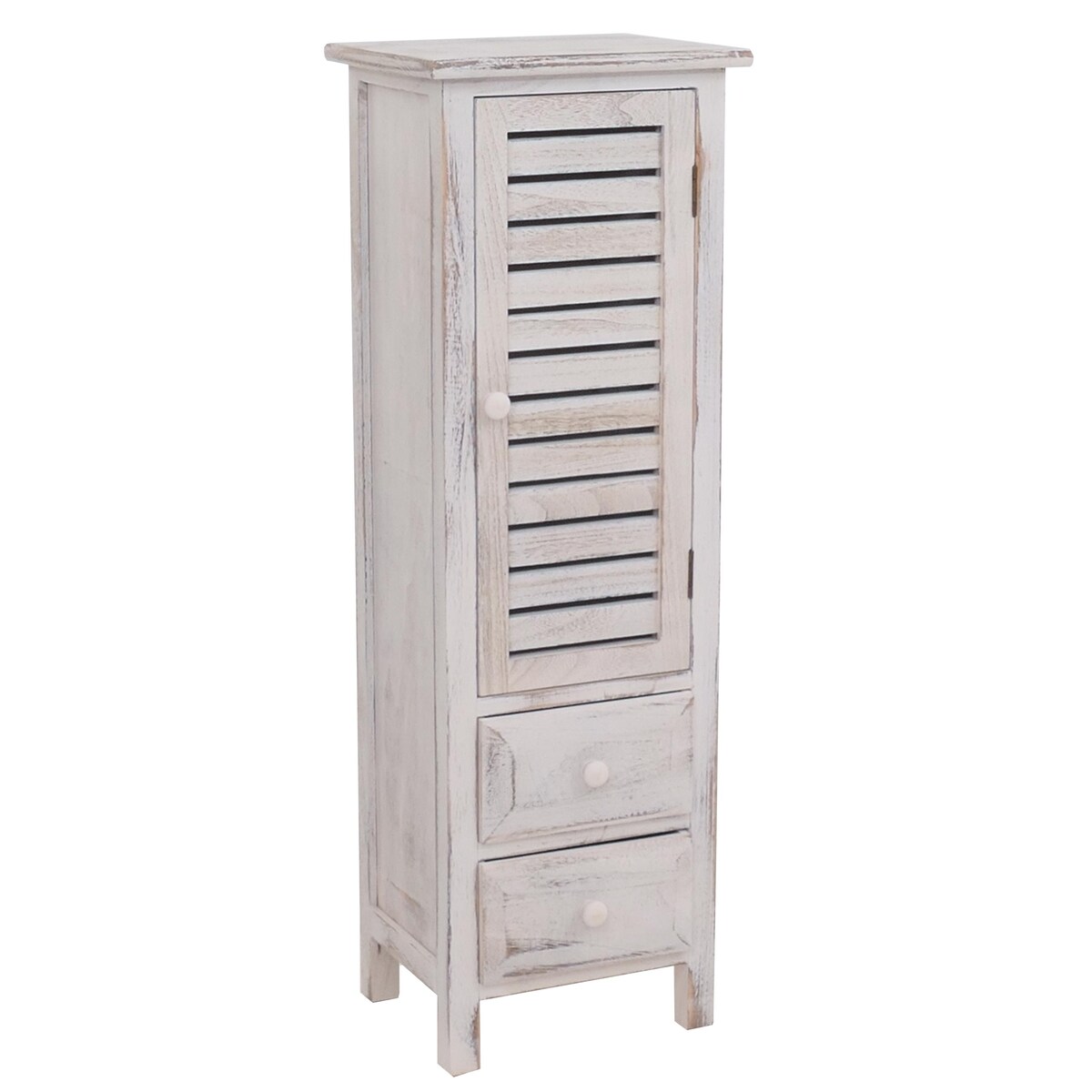 Mendler Kommode Schrank, 90x30x25cm, Shabby-Look, Vintage ~ weiß