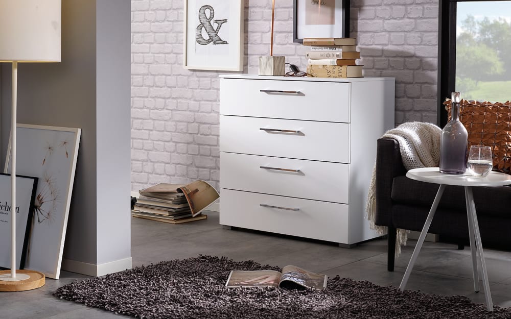Kommode – Sideboard – Schubladenkommode – 110 cm – Weiß / Hochglanz – Zeitlose Ordnung mit großzügigem Stauraum