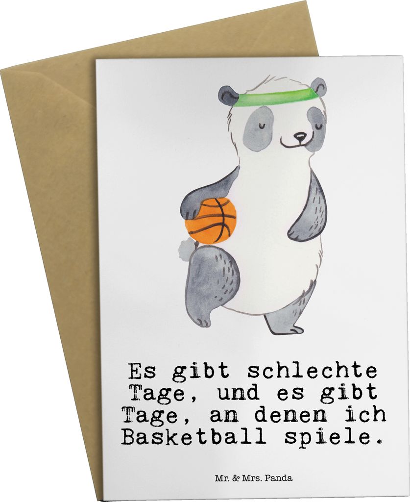 Mr. & Mrs. Panda Grußkarte Panda Basketball - Weiß - Geschenk, weihnachtskarten, hochzeitskarten, Basketballplatz, Verein, Grußkarten, kommunion...