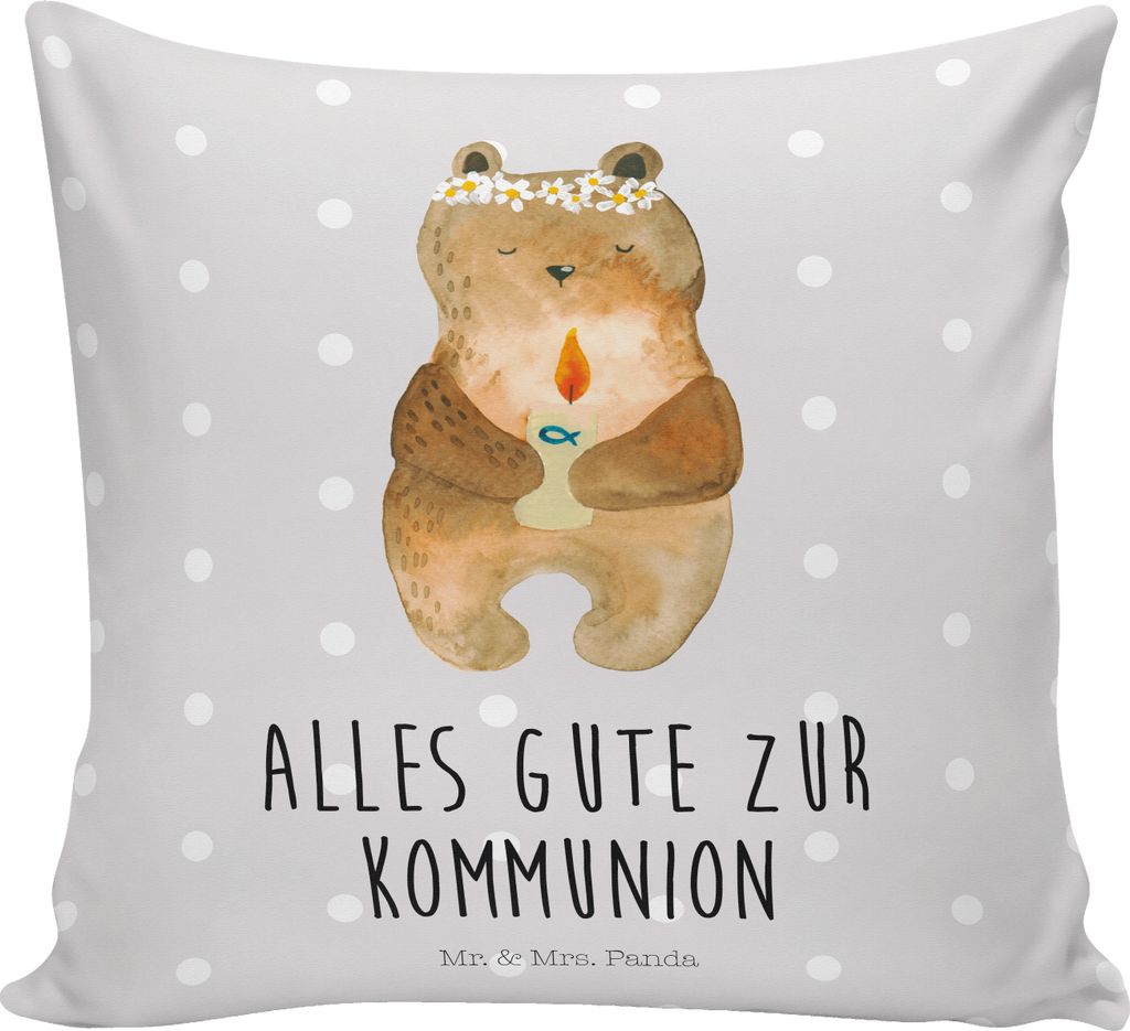 Mr. & Mrs. Panda Sofa Kissen Bär Kommunion - Grau Pastell - Geschenk, 40x40, Katholisch, Dekokissen, für, Taufkerze, Gottes Segen, Deko, Teddy, k...