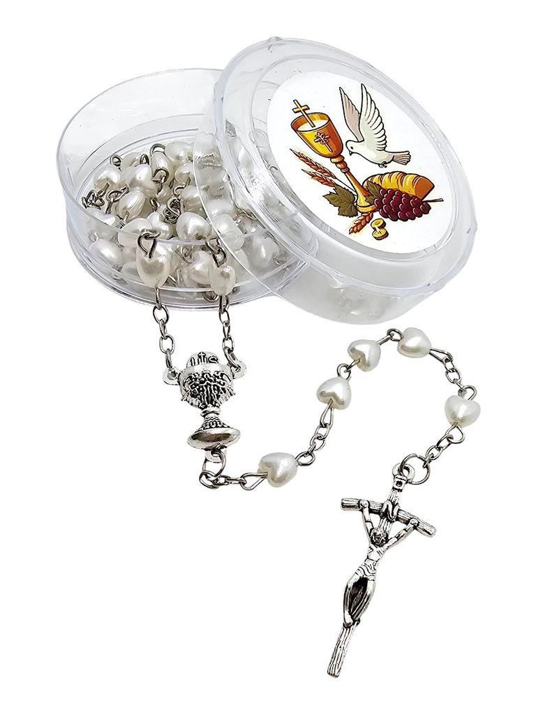 Kommunion Rosenkranz weiß Herz Perlen mit Box Papst Kreuz 50 cm Geschenk