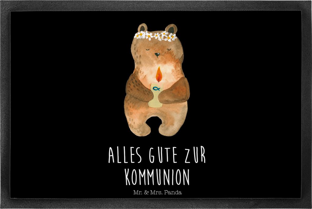 Mr. & Mrs. Panda fußmatte Bär Kommunion 60 x 90 cm - Schwarz - Geschenk, Gottes Segen, Schmutzmatte, Taufkerze, Teddy, Fußabstreifer, Bodenvorle...