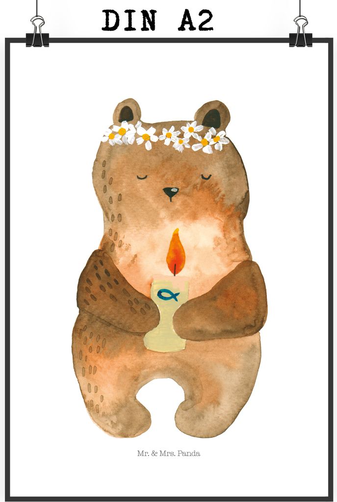 Mr. & Mrs. Panda Bild Bär Kommunion DIN A2 - Weiß - Geschenk, Gottes Segen, Plakat, Wandbild, Taufkerze, wandkunst, wanddeko, Katholisch, Wanddek...