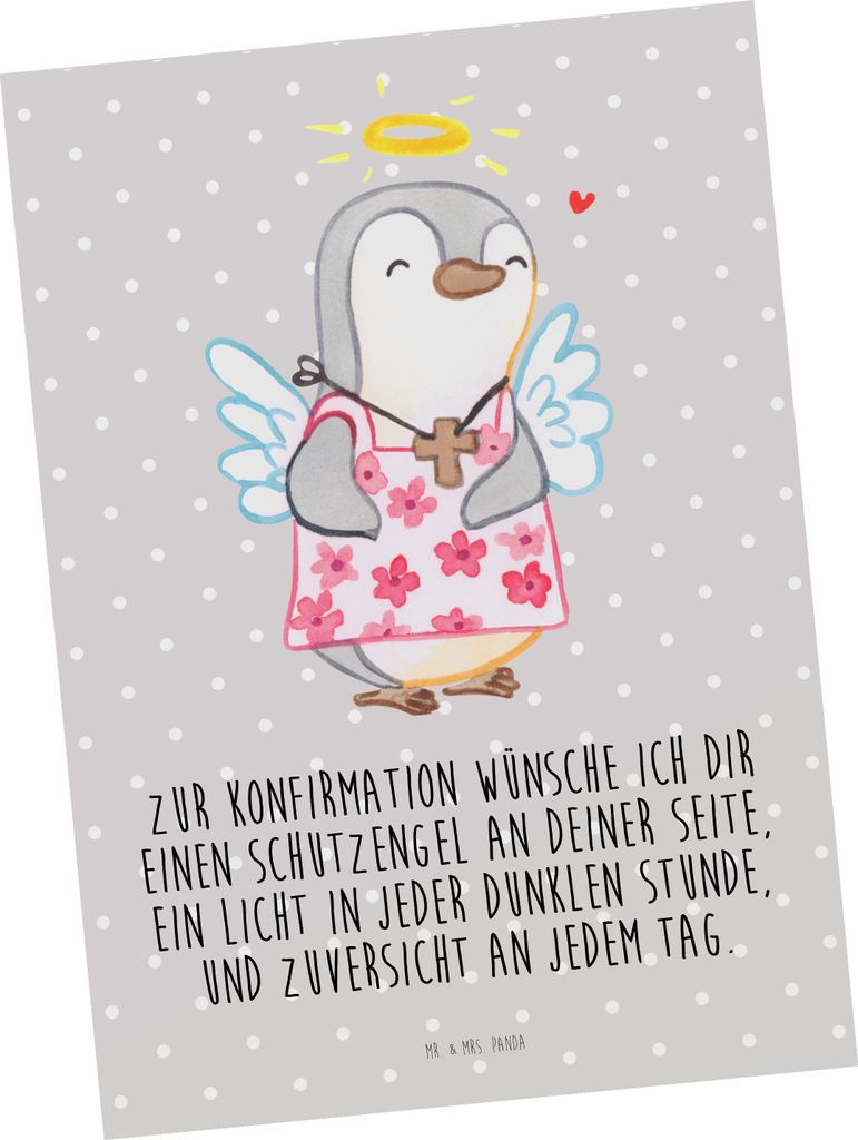 Mr. & Mrs. Panda Postkarte Pinguin Konfirmation - Grau Pastell - Geschenk, Schutzengel, Kommunion, Postkarten, Ansichtskarten, bildkarte, Grußkart...