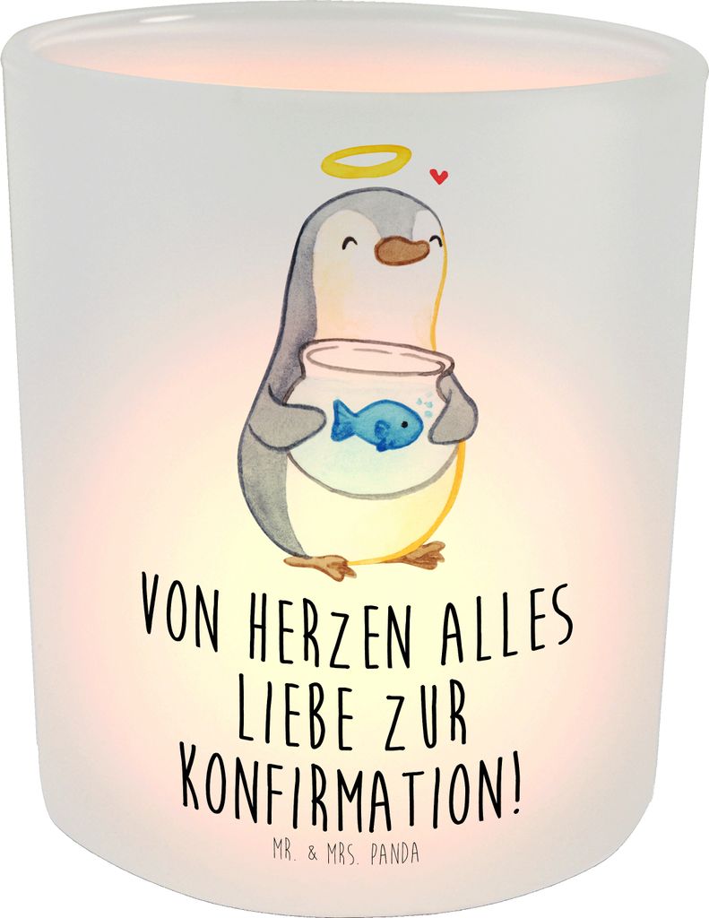 Mr. & Mrs. Panda Kerzenhalter Pinguin Fisch - Transparent - Geschenk, Glas Windlicht, Konfirmation, Kommunion, Vertrauen, aus, Zuversicht, Teelicht...