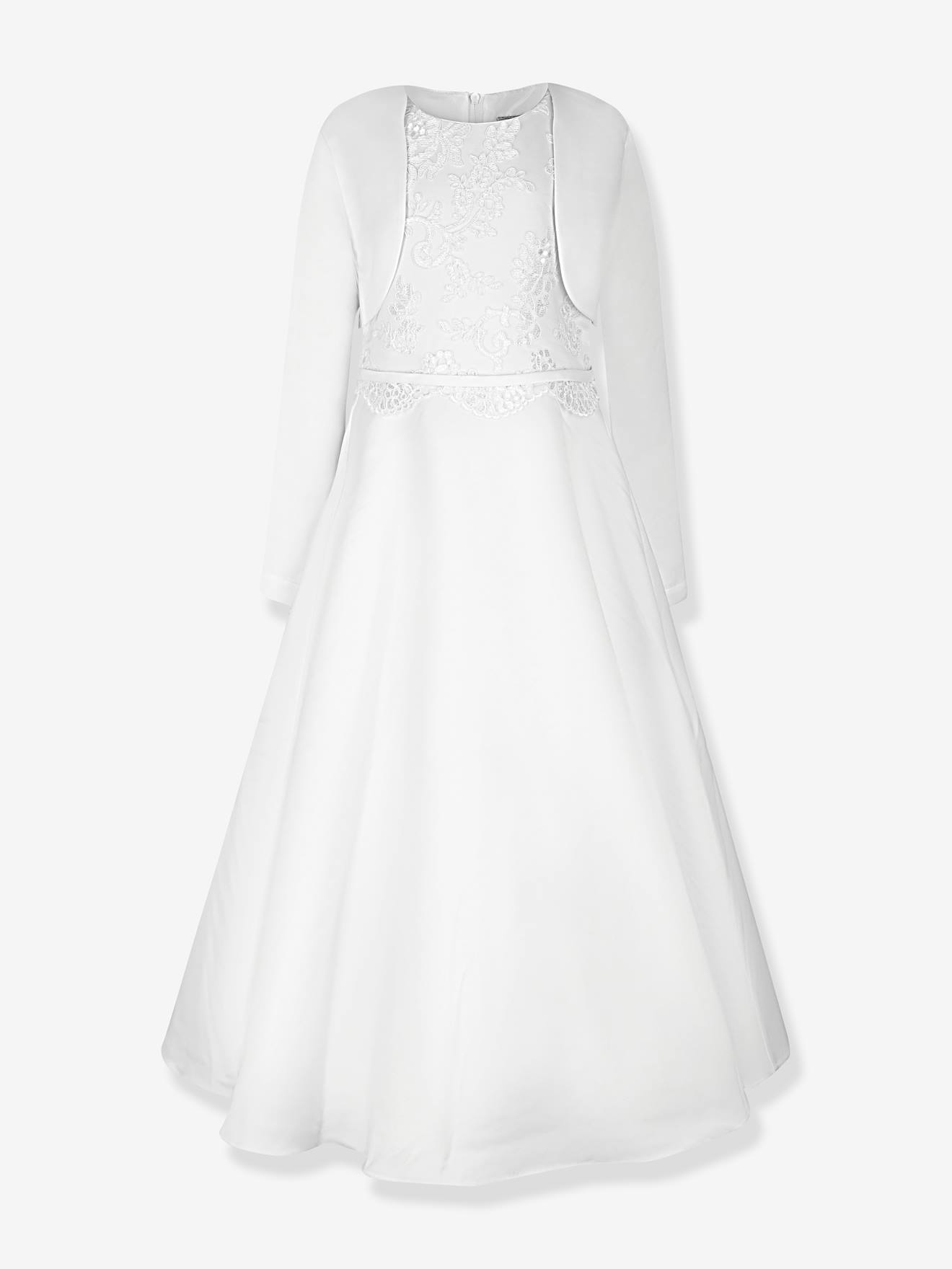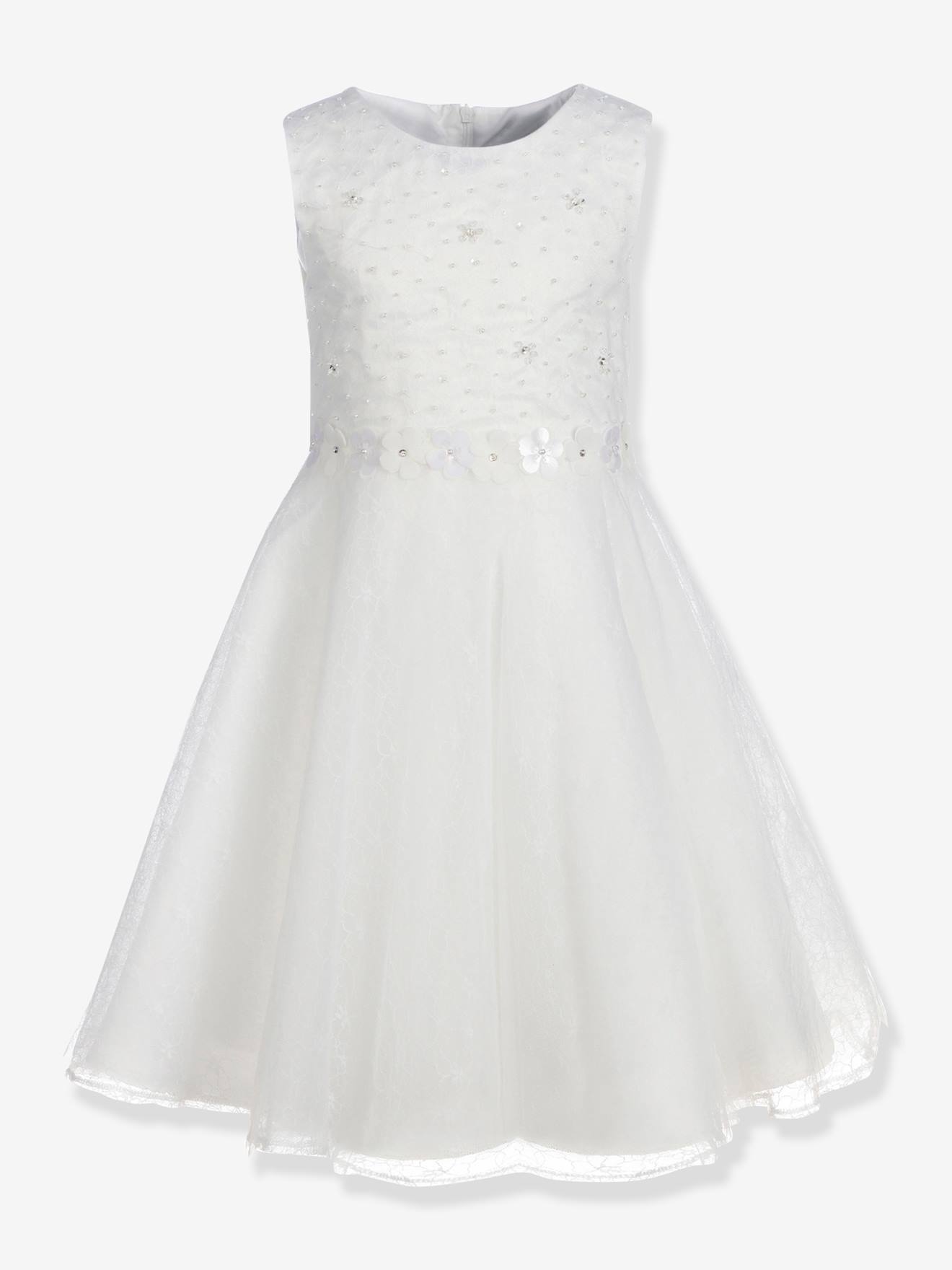 Festliches Kleid mit Spitzenärmeln Mädchen, Kommunionkleid weiß Gr. 140 von vertbaudet