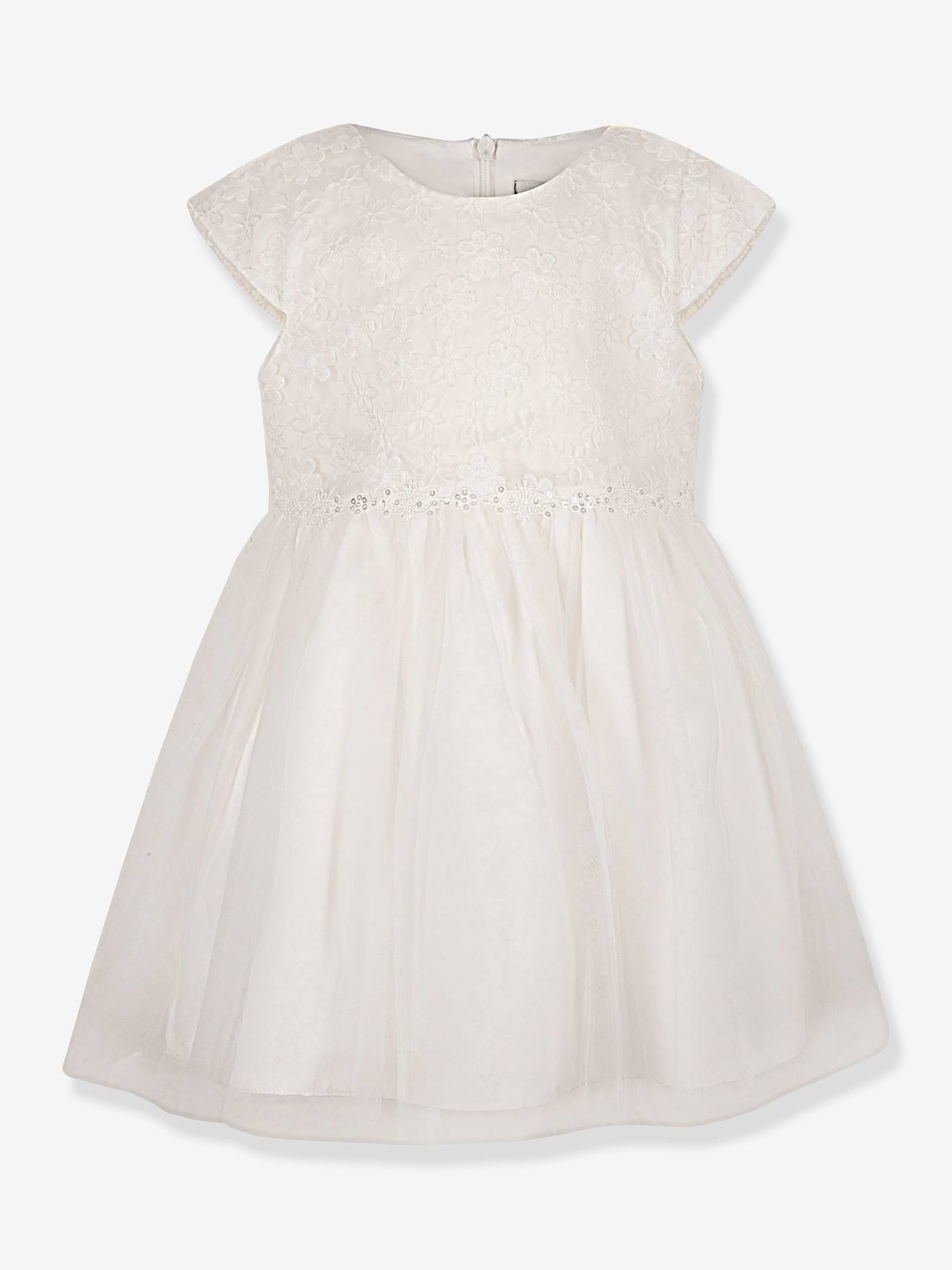 Festliches Kleid mit Spitzenärmeln Mädchen, Kommunionkleid weiß Gr. 128 von vertbaudet