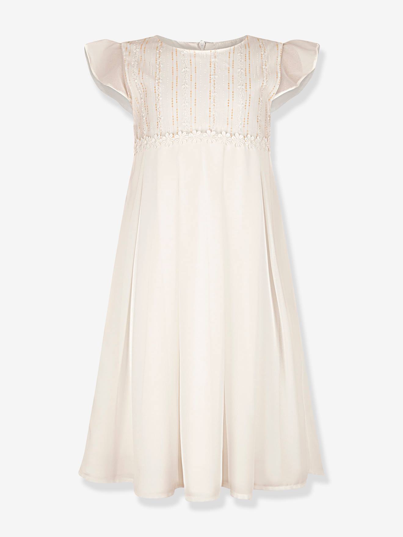 Mädchen Festkleid mit Volantärmeln & Spitzenbordüren, Kommunionkleid weiß Gr. 140 von vertbaudet