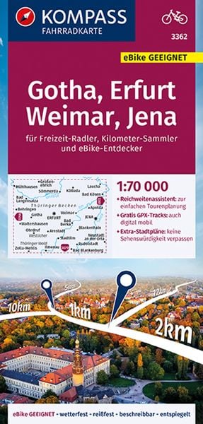 KOMPASS Fahrradkarte 3362 Gotha, Erfurt, Weimar, Jena 1:70.000, Sonstige von , Kompass-Karten, 978-3-99121-151-8