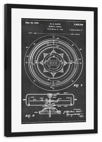 Poster mit Rahmen schwarz "Magnetischer Kompass" artboxONE - Reise,Schwarzweiß