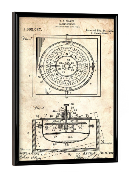 Poster mit schwarzem Rahmen "Nautischer Kompass (Antik)" artboxONE - Reise,Reise / Strand und Meer