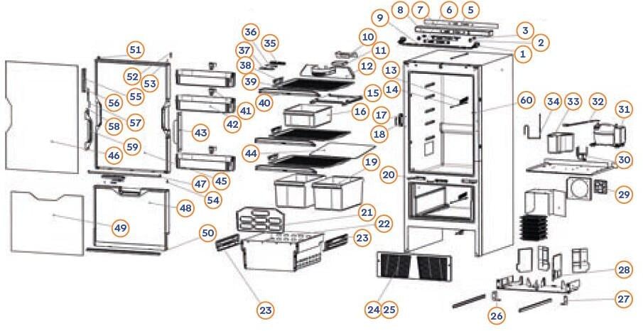 Frostfachtüre mit Dekorplatte - Thetford Ersatzteil Nr. 692859 - für Kühlschrank T2160/2175 Kompressor