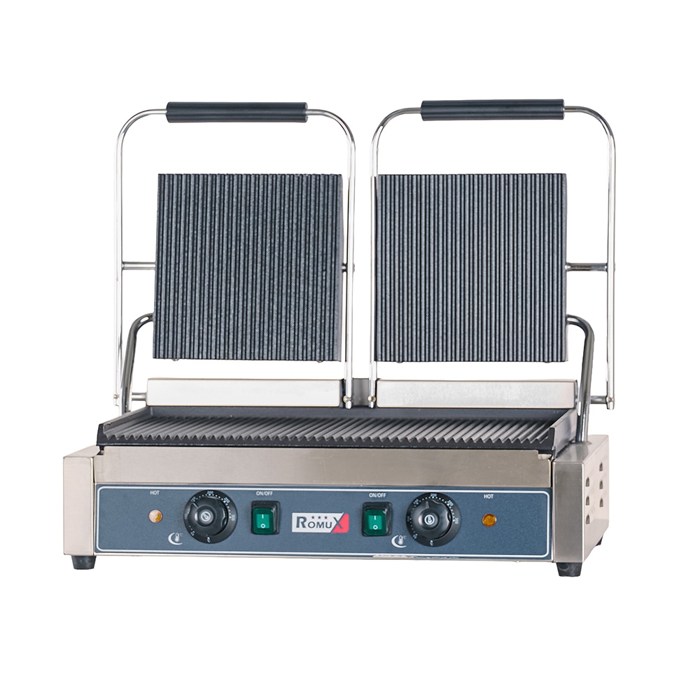 Romux Kontaktgrill Panini Elektrisch 58 cm Doppel Tischgerät aus Edelstahl mit Doppelter Gerillter Grillfläche | Kontaktgrill 300° - 3600 W