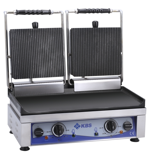 KBS Kontaktgrill Grillfläche 47x23 cm oben & unten gerillt, 2 Grillzonen, 3600 Watt, 230V