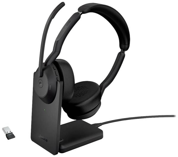 Jabra Evolve2 55 MS Stereo On Ear Kopfhörer Bluetooth Stereo Schwarz Mikrofon-Rauschunterdrückung, Noise Cancelling Headset, Mikrofon-Stummschalt -