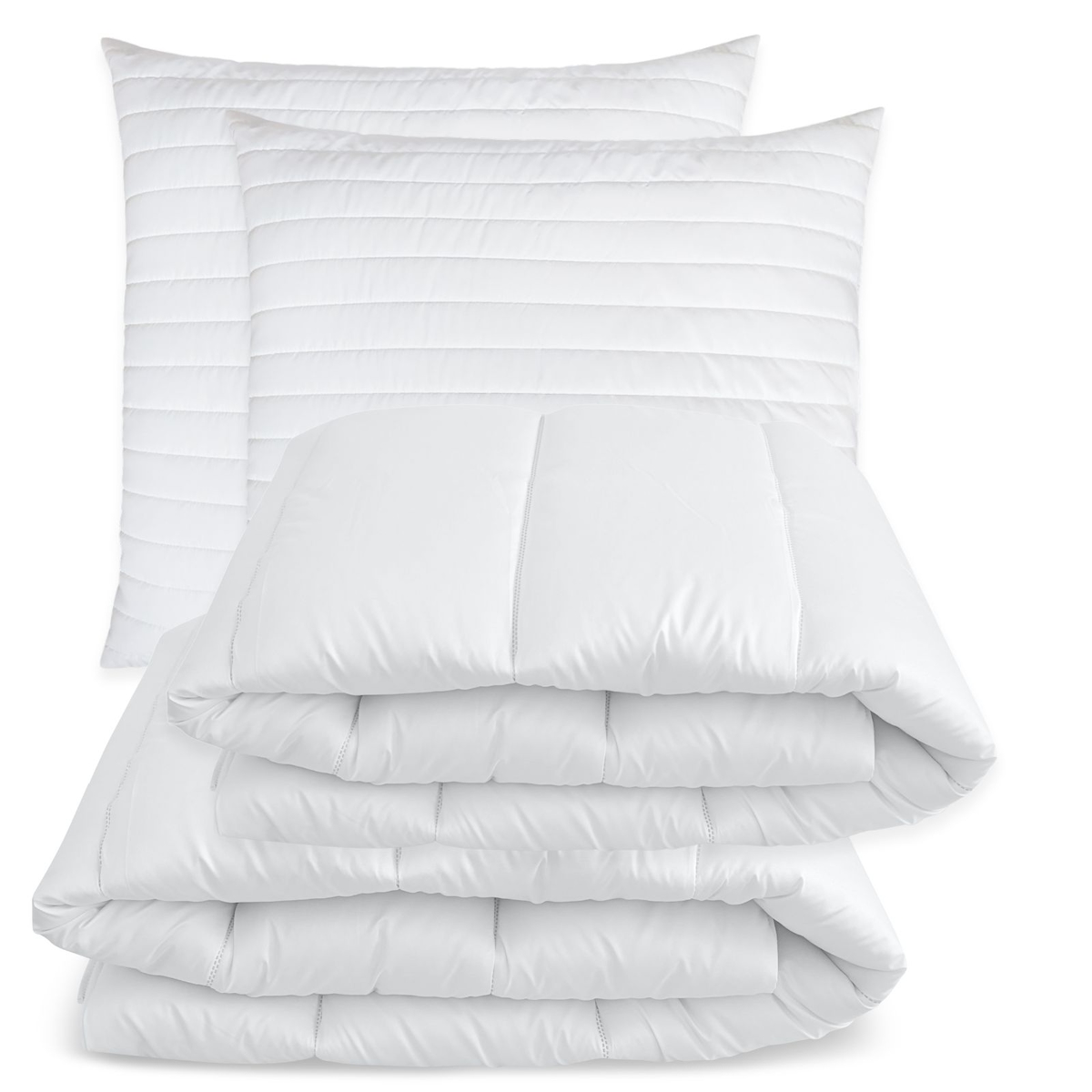 2-teiliges Microfaser Bettenset JEKATEX - 135x200 cm Kissen 80x80 cm Ganzjahres Bettdecke und Kopfkissen weiß